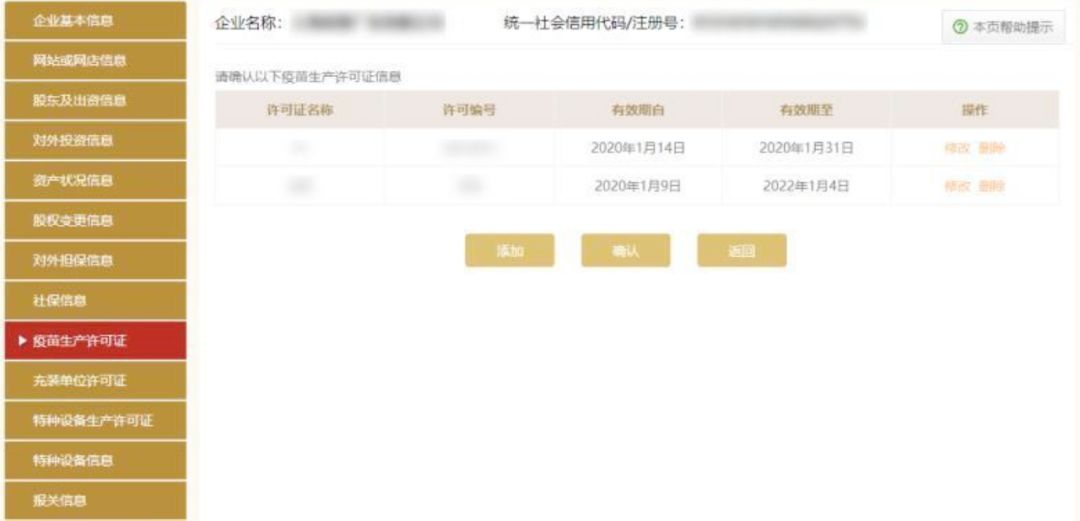 为深入落实总局《通知》要求,在疫苗生产企业、特种设备生产企业等与人民群众生产生活密切相关的高风险行业领域,对于取得相关许可证的正常经营企业,应要求企业依法履行主体责任,推动实现应报尽报。2019年度年报事项中,增加了填写疫苗生产许可证、充装单位许可证、特种设备生产许可证信息,该部分填报内容属于2019年度年报新增内容,只有已在相关部门取得许可证的企业填报此内容,填报年报时系统自动关联出相关许可证信息,由企业自行填报并公示。