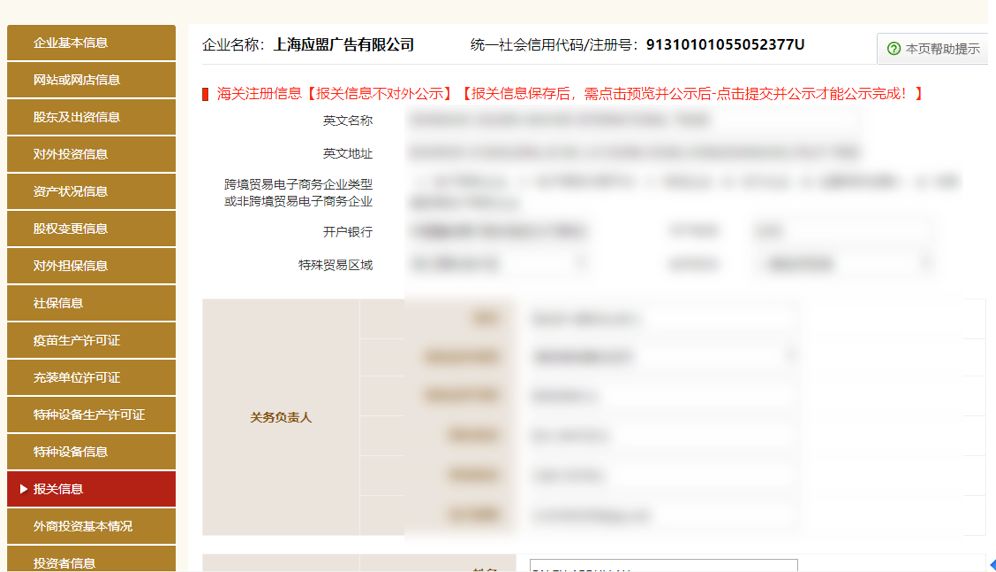 企业已经使用法人一证通登录上海市一网通办的,进入公示系统时无需二次登录,直接进入信息填报管理界面。